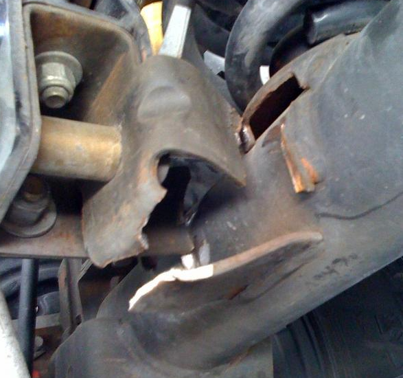 The photo below is of a differential track bar mount that has become torn off the vehicle (in an extreme case). This must be