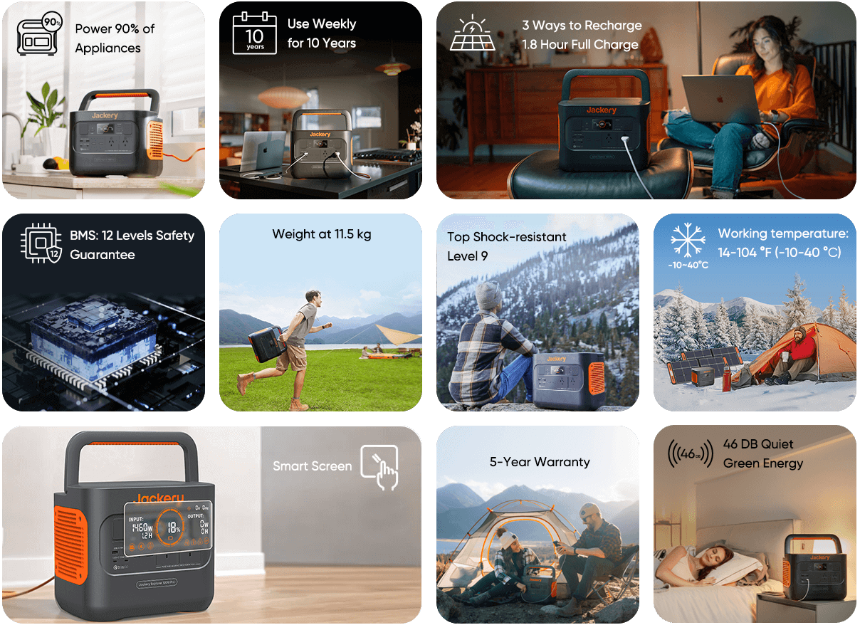 With unparalleled output, the Jackery Explorer 1000 Plus is the top choice for similar-level portable power stations. Covering various scenarios, it provides support for camping, off-road travel, home emergencies, and more.